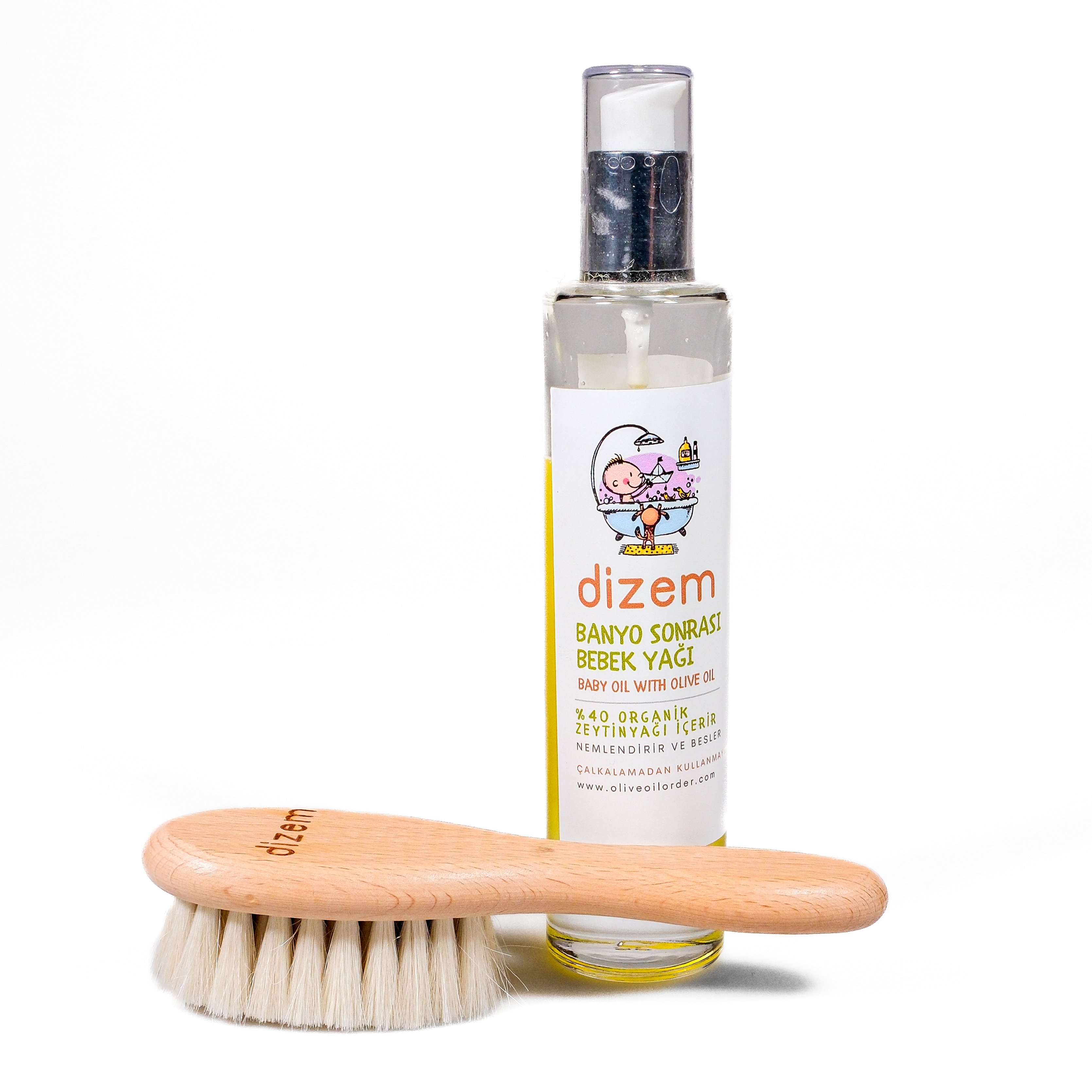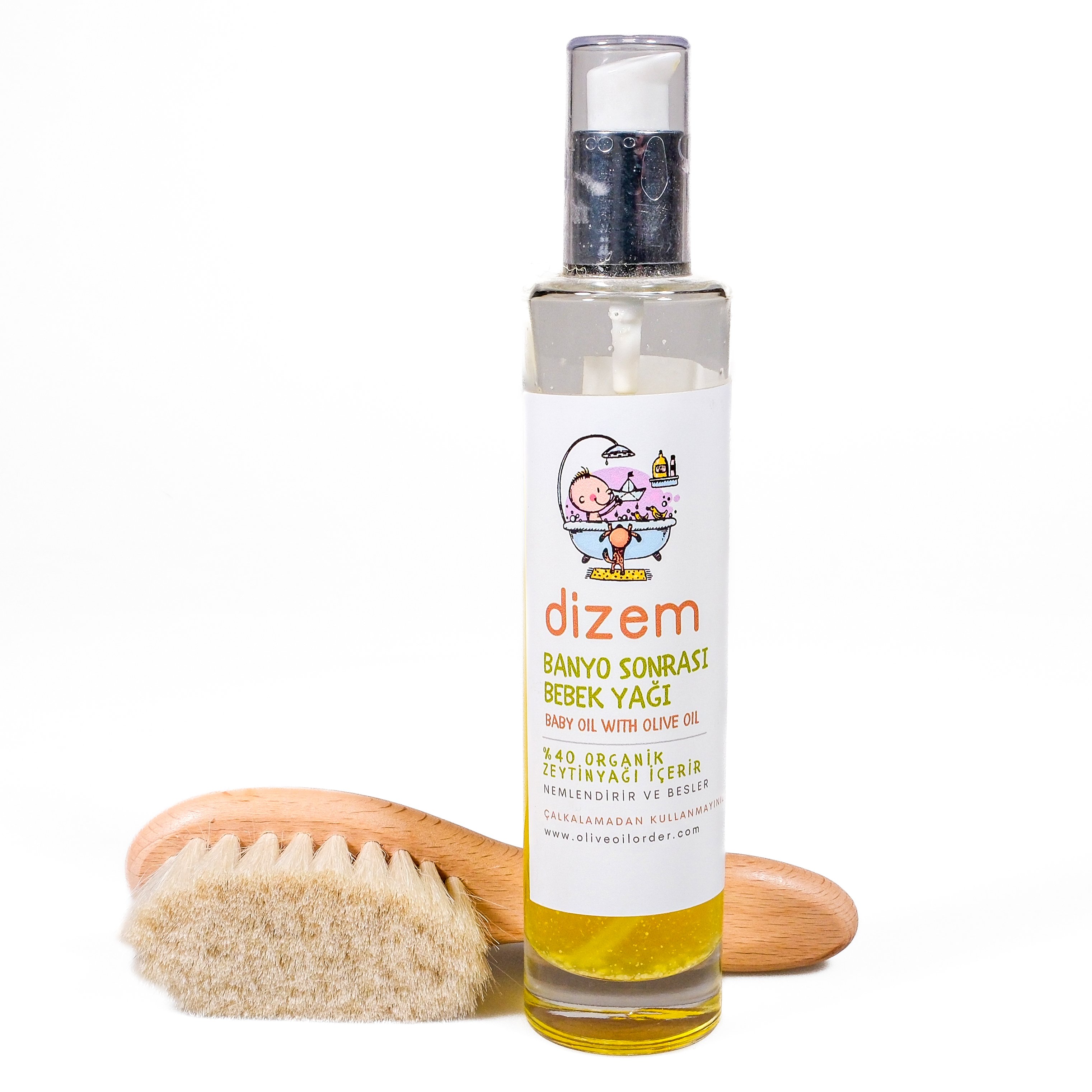 Organik zeytinyağı bazlı bebek masaj yağı, cildi kurutmadan beslerken; doğal kıllara sahip yumuşak fırça, masajı daha keyifli ve etkili hâle getirir.